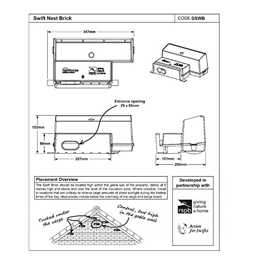 Swift Nidificazione Brick Box, Nero Allevamento Bird House per il Mattone o il Rendering di Pareti