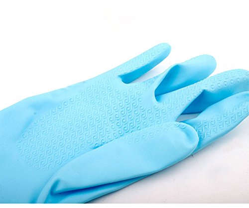SWIHELP Guanti Domestici, Cotone All'interno Gomma Guanti Caldi Impermeabile Antiscivolo Guanti Per in Lattice Uso Domestico Di Pulizia Piatti Lavaggio Giardinaggio.[blu]