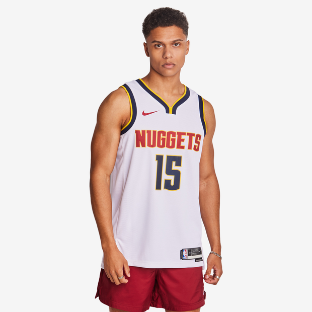 Con uno sfondo bianco, la maglia Association Edition è un elemento comune condiviso da tutte le squadre dell'NBA. La maglia Denver Nuggets si ispira al modello indossato dai professionisti sul parquet, dai colori e dalla grafica della squadra al mesh leggero e traspirante. Mantiene la pelle fresca e asciutta in campo e nel tempo libero, così puoi fare il tifo per il tuo giocatore preferito e il gioco che ami. Vantaggi La tecnologia Nike Dri-FIT allontana il sudore per favorirne una rapida evaporazione e mantenere la pelle asciutta per un comfort ideale. Il mesh offre traspirabilità dentro e fuori dal campo. Dettagli prodotto Nome e numero del giocatore in twill Grafica applicata a caldo Targhetta sul bordo 100% poliestere Lavabile in lavatrice Prodotto importato