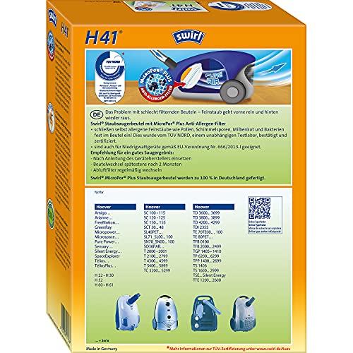 Swirl H 41 Sacchetti per aspirapolvere MicroPor con filtro antiodore e sistema di filtraggio HEPA
