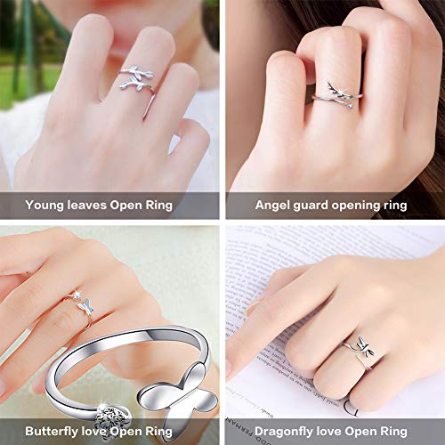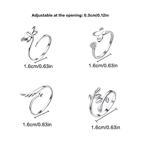 SwirlColor Anelli Regolabili, Anelli Regolabili per Donna Anelli Aperti per Dito Anelli in Argento Ala Farfalla Libellula Foglia Anello 4 Pezzi, con Scatola per Gioielli 1 Pezzo