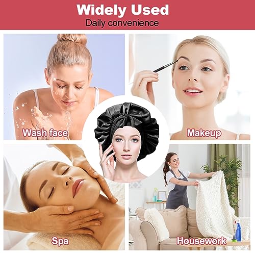 Confezione da 2 silk bonnet: È possibile ottenere 2 pz berretto di seta Sleep Cap per capelli ricci, tra cui berretto di seta nero e rosa, con 5 fasce per capelli. I colori dei berretti notte sono tutti colori quotidiani e possono essere abbinati a diversi stili e colori di pigiama, pensati appositamente per donne e ragazze.