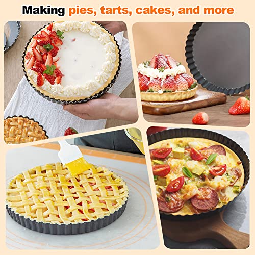 ☀ Teglie rimovibili: le teglie hanno un fondo robusto rimovibile, che consente di staccare facilmente la base dalla padella, garantendo una facile separazione della quiche o della torta. Il design unico di latta per crostata consente anche un rapido raffreddamento e una facile rimozione del cibo cotto senza danneggiarne la forma.
