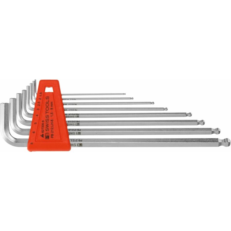 testa sferoidale per lavorare con angolazione fino a 30°. Lega speciale PB Swiss Tools, particolarmente tenace e dall'elevata durezza. Superficie nichelata e cromata, bordi leggermente smussati. Contenuto: Cad. 1 chiave maschio piegata n. art. 627150: Dim. 1,5;