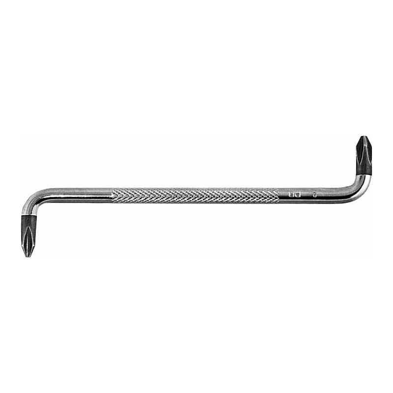 Due punte piegate a 90°. Lega speciale PB Swiss Tools, superficie nichelata e cromata. Punte brunite. Gambo zigrinato per una presa sicura in ambienti umidi o oleosi. Tagli contrapposti a 45°. Per viti con impronta a croce Phillips. Dati tecnici Tipo di prodotto Giravite Lunghezza complessiva, mm 125 Dimensione dell'impronta a croce 2 Per ⌀ viti, mm 3,1 - 5,2