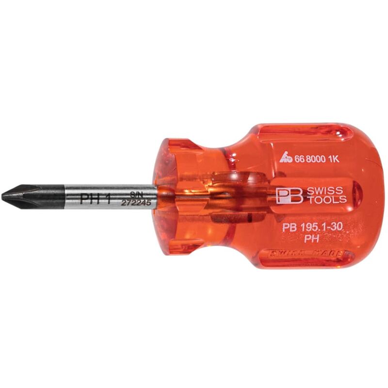 Impugnatura robusta “Classic” in plastica trasparente e resistente agli urti (senza cadmio). Lama in lega speciale PB Swiss Tools, particolarmente tenace e dall'elevata durezza. Superficie nichelata e cromata, punta brunita. Esecuzione corta. Uso: Giravite per viti Phillips con intaglio a croce secondo DIN ISO 8764-1. Dati tecnici Tipo di prodotto Giravite Serie Classic Lunghezza complessiva, mm 75 Lunghezza lama, mm 30 Dimensione dell'impronta a croce 1K Per ⌀ viti, mm 2,1 − 3