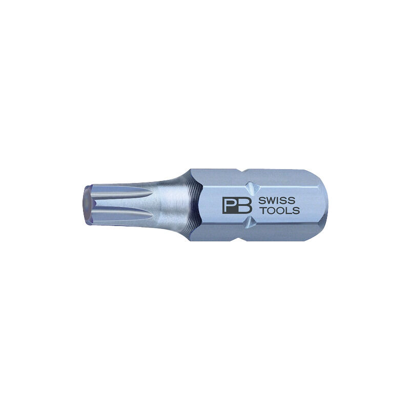 Per l'alloggiamento in impugnature portainserti o avvitatori elettrici con attacco esagonale oppure per l'alloggiamento in raccordi n. art. 675000 − 675050. Straordinaria elasticità e tenacia, di elevata durezza per durate elevate. Estremità altamente precisa per una presa perfetta sulla vite e “Anti-Cam-Out”. Il rivestimento Nano è al contempo codificazione cromatica e protezione antiruggine. Uso: Per viti con impronta Torx®. Norma: DIN ISO 1173. Materiale: Acciaio speciale ad alta resistenza, particolarmente tenace e di elevata durezza. Dati tecnici Tipo di prodotto Utensile bit Lunghezza complessiva, mm 25 Codolo esagonale per bit C 6,3 Denominazione originale prodotto Bit Precision Impronta Torx® TX20/95