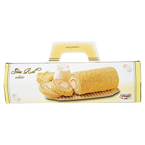 Swiss Roll White Arrotolato di Pan di Spagna Farcito al Latte e Glassato con Cioccolato Bianco in Fiocchi, 300g