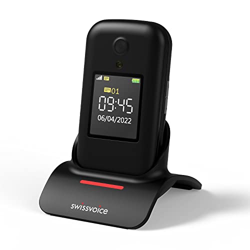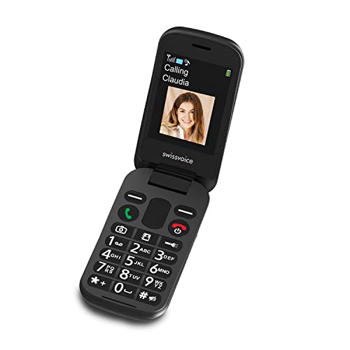 Swissvoice S38 Nero, telefono portatile 2G a conchiglia per Senior con doppi schermi e funzioni di supporto gratuite
