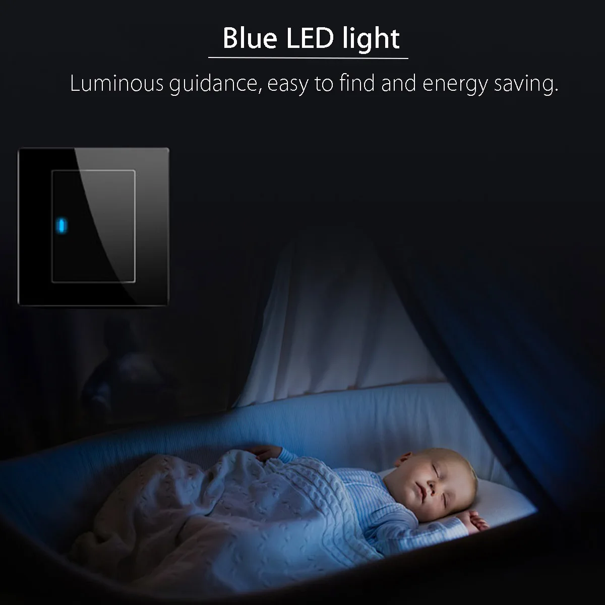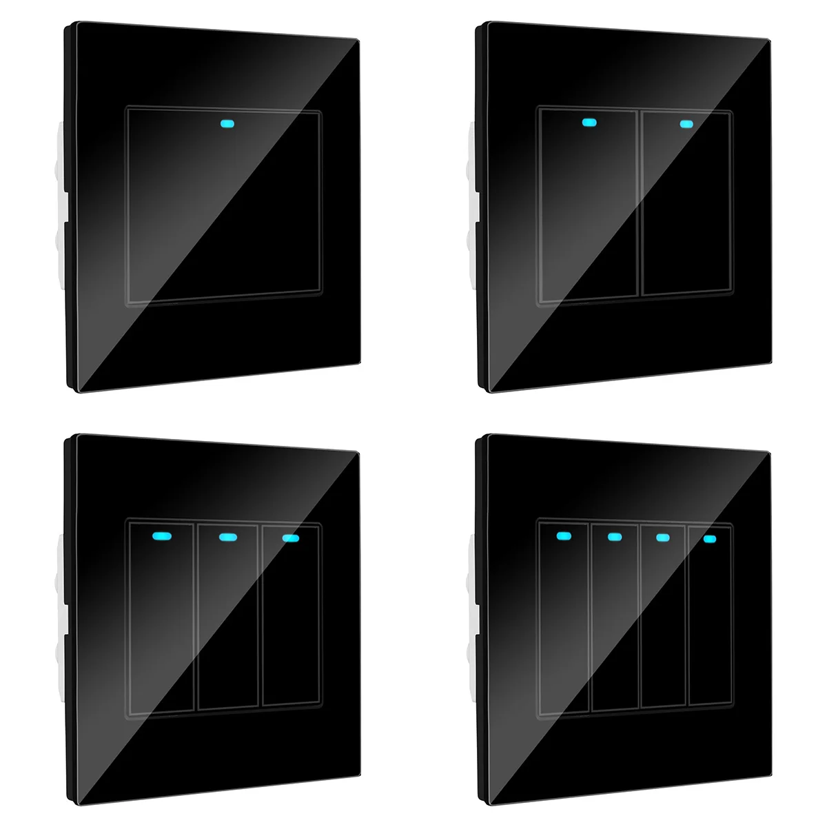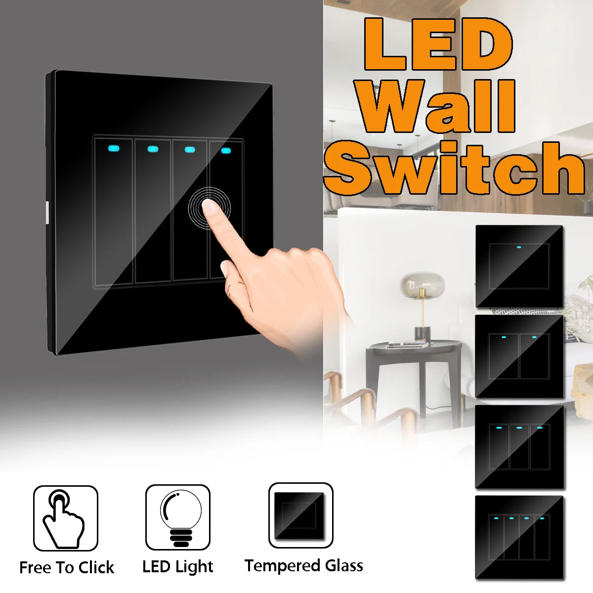 LED Wall Switch 1/2/3/4 Gang 100-250V AC Luminous Tempered Glass Panel Home Light Smart Random Click Black Switch Control