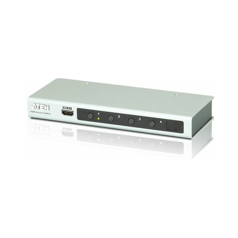 ATEN Switch HDMI 4K 4-porte. Tipo porta video: HDMI. Colore del prodotto: Argento, Materiali: Metallo, Tempo massimo di refresh: 60 Hz. Consumi: 1,76 W. Larghezza: 82,5 mm, Profondità: 200 mm, Altezza: 25 mm. Larghezza imballo: 59 mm, Profondità imballo: 239 mm, Altezza imballo: 160 mm