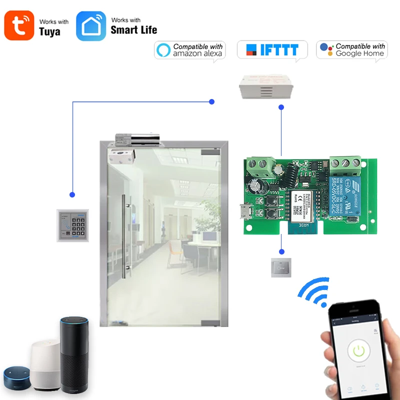DC5V 12V 24V 32V 1CH 2CH Wifi Switch for Door Access,Intelligent Module,10A Relay,RF433mhz,Alexa Google Assitant,Tuya Smart Life