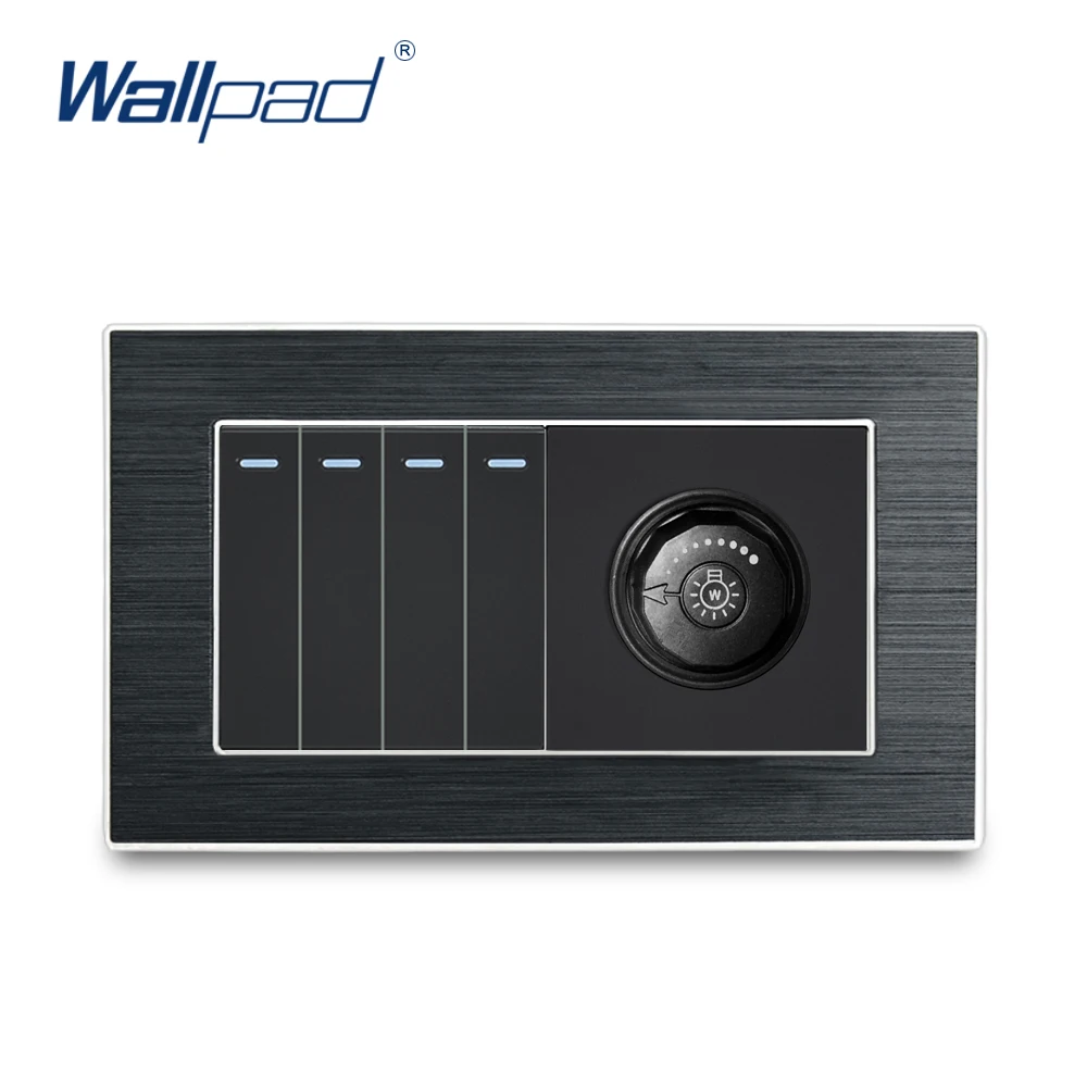 4 Gang 2 Way Switch With LED Dimmer Wallpad Luxury Wall Light Switch Satin Metal Panel With Silver Border 146*86mm