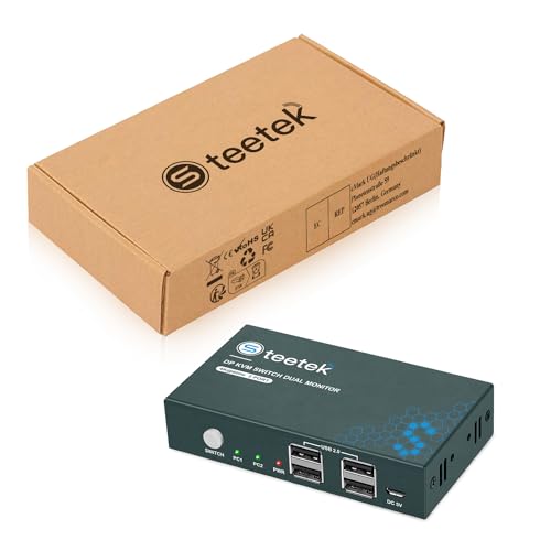 KVM Switch DisplayPort 2 Porte, USB2.0, 4K@60Hz,DP KVM Switch 2 PC 1 Monitor,DP1.2,Ultra HD,Button Switch,Con cavo,2 In 1 Out,Guscio in Metallo
