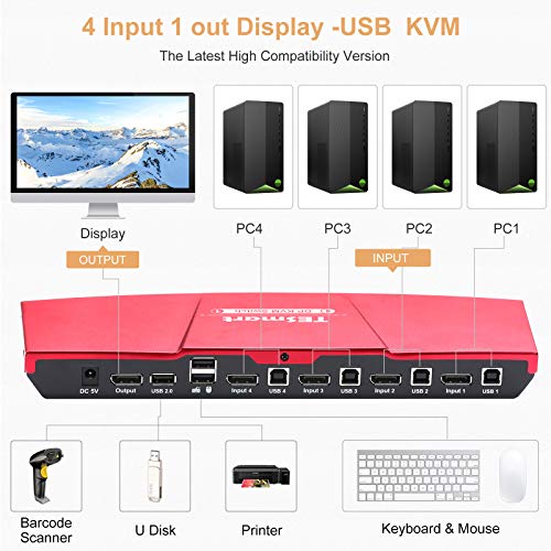✤ Una soluzione perfetta per le workstation desktop che aumenta la produttività, consente di risparmiare spazio e denaro ✤ Consente il passaggio rapido e semplice tra 4 computer abilitati 4K utilizzando una singola tastiera USB, mouse USB e console video DisplayPort per una maggiore efficienza e gestione. Gli scenari comuni includono: home office, giochi, piccole imprese, sale server, data center, sale di controllo, ecc.