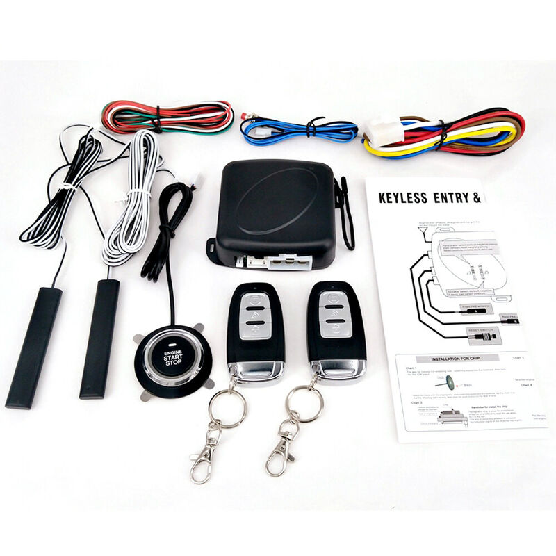 Pulsante di avviamento a pressione del motore e sistema di blocco. Con questo, puoi avviare o arrestare la tua auto molto più facilmente e allo stesso tempo mantenerla al sicuro. Specifiche: Materiale principale: ABS Colore: nero Batteria del telecomando: 1 * batteria a bottone CR2032, 3V 240mAh (inclusa) Tensione di lavoro: DC 12V Corrente di riposo: inferiore a 10 mA Frequenza di lavoro: 433 MHz Peso dell'articolo: 400 g / 0,88 libbre Dimensioni della confezione: 300 * 100 * 50 mm / 11,8 * 3,9 * 2,0 pollici Peso della confezione: 550 g / 1,21 libbre Elenco dei pacchetti: 1 * Host 2 * Maniglia del telecomando 1 * Pulsante di avvio 2 * Antenna di rilevamento 1 * Start Harness 1 * Cablaggio di rilevamento 1 * Pulsante Ripristina 1 * Manuale