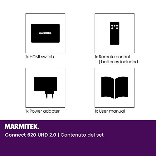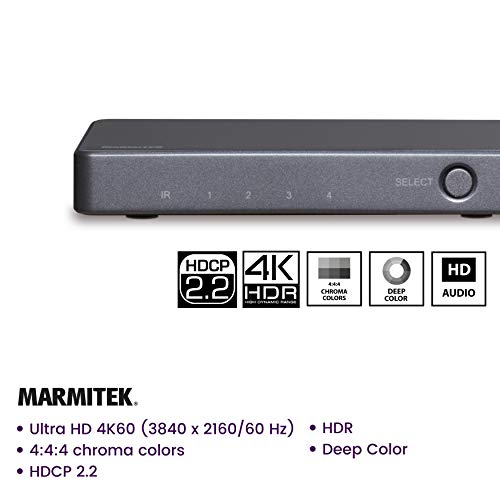 HDMI Switch 4K - Marmitek Connect 620 UHD 2.0 - 4 IN / 1 OUT - Ultra HD 60Hz - Commutazione Automatica Tra Sorgenti HDMI - HDCP 2.2 - Switch HDMI - 3840 x 2160 - HDR 4K60