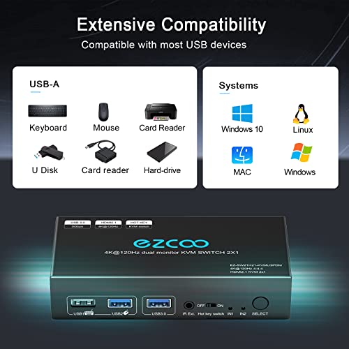 HDMI KVM Switch Dual Monitor 4K 60Hz USB 3.0 2 porte con Hotkey 18Gbps HDCP2.3 2x HDMI Display esteso Condividi 2 PC con una tastiera Mous HDR D-olby Vision VRR Telecomando IR