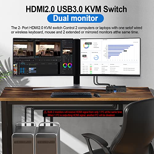 【Switch KVM a 2 porte HDMI 2.0 Doppio Monitor】 Switch KVM a 2 porte HDMI 2.0 Controlla 2 computer o laptop con un set di tastiera cablata o wireless, mouse e 2 monitor estesi o speculari allo stesso tempo. Supporta il controllo Hotkey tramite tastiera, telecomando IR e interruttore a pulsante.