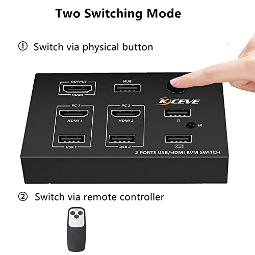 KVM Switch Montaggio a Parete, 2 Porte HDMI USB Commutatore Per 2 PC Mouse e Tastiera Condivisi Supporto 4K @ 30Hz, Compatibile Windows/Linux