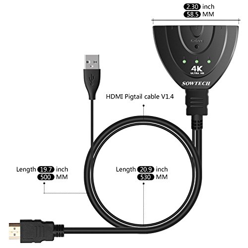 Pratico ed intelligente - Il SOWTECH SWITCH HDMI è compatibile con le versioni 4K / 2K e permette di trasmettere il segnale da 3 periferiche in un televisore (Nota: l'articolo è uno SWITCHER HDMI a 3 porte, non un divisore SPLITTER HDMI)