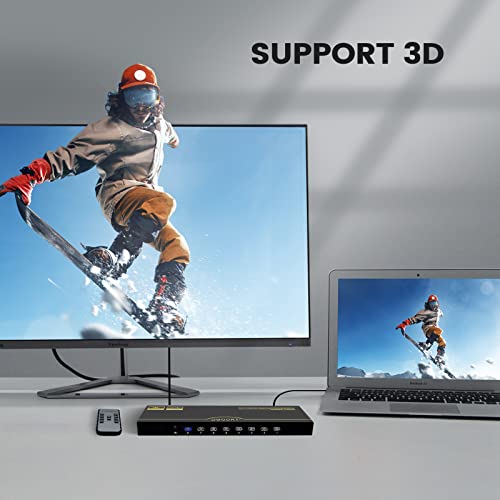 Design resistente e segnale stabile - Il corpo del selettore HDMI è realizzato in materiale metallico di prima qualità, più resistente della plastica. Dopo la divisione del segnale, il segnale non si indebolisce e la trasmissione è ancora stabile e facile da collegare, senza perdita di segnale e la qualità audio non diminuisce.