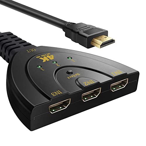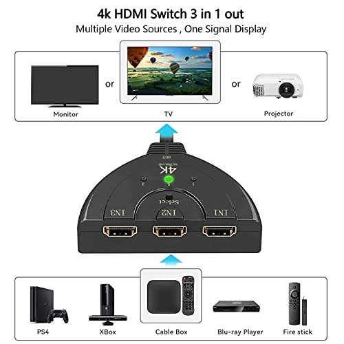 Switch HDMI 4K, 3 In 1 Out Sdoppiatore HDMI Switch Supporta 4K, 3D, 1080P, UHD, Switch HDMI Sdoppiatore HDMI per TV, HDTV, Proiettore, Xbox 360, Set-top Box, PS2, PS3, PS4, PC e Laptap
