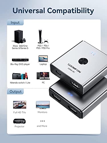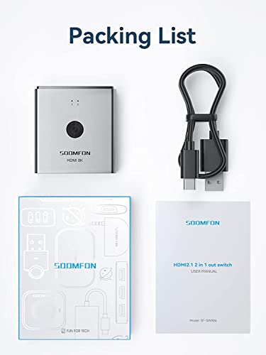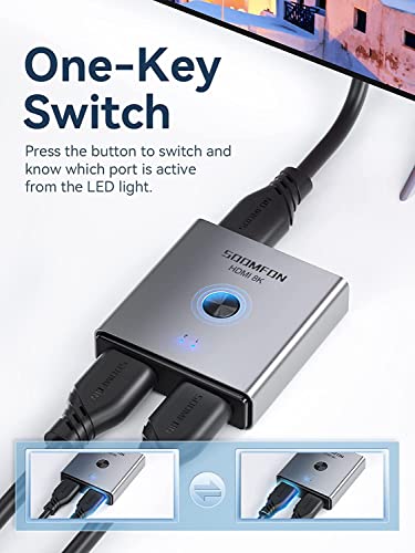 Switch HDMI 2.1 8K, Switch HDMI SOOMFON 8K @ 60Hz, Splitter Switch HDMI 2 in 1 Out, Switch HDMI 4K 120Hz per HDCP 2.3, Dolby, HDR, 3D, per TV/Xbox/PS5/Switch/Blu-Ray Player/Projektor