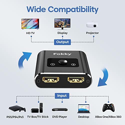 HDMI Switch HDMI Splitter, Alluminio Switch HDMI bidirezionale 2 Ingresso a 1 Uscita Commutatore HDMI 1 IN 2 OUT Supporta 1080p 3D 4K@30hz HDCP, PS4, PS5, Blu-Ray Player, DVD, DVR, Xbox