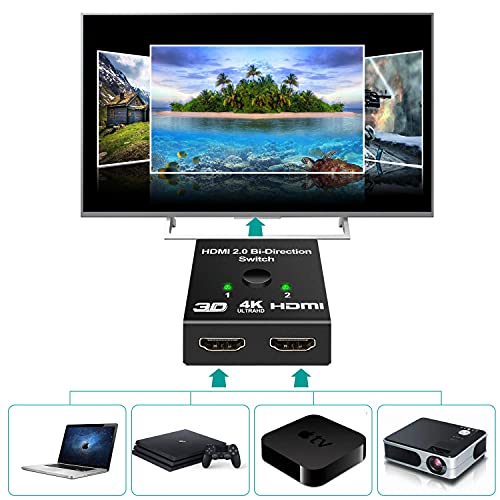 Switch HDMI, Switcher HDMI bidirezionale Ingresso 2 a 1 Uscita o Switch 1 a 2 Uscita, Supporta 4K 3D e 1080P per HDTV BLU-Ray Player PS3 PS4 DVD DVR Xbox ecc.