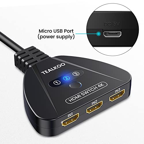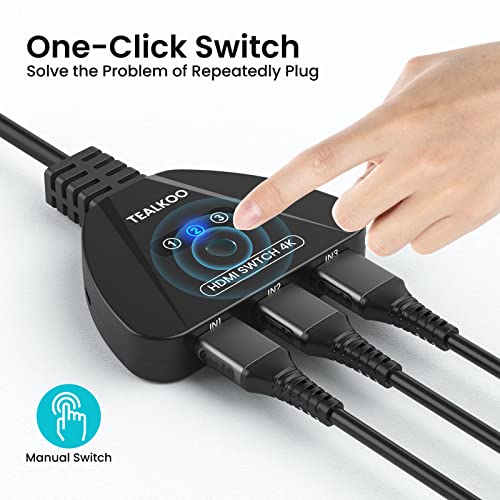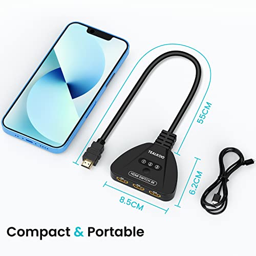 Switch HDMI 3 In 1 Out, TEALKOO 4K UHD Sdoppiatore HDMI con 55cm Cavo, HDMI 2.1 Switch Supporta 4K 3D HDR, Splitter HDMI Per TV,Fire Stick,Decoder, PS5/4/3,SKYQ,Xbox,PC, DVD Player, Blu-Ray