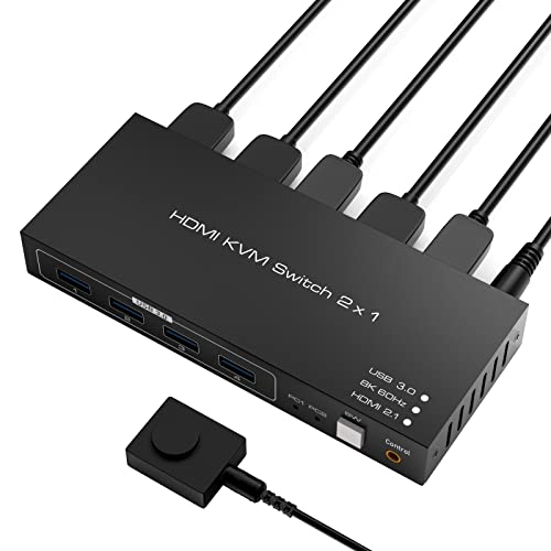 2x1 HDMI KVM Switch - Tendak 8K 2 Porte HDMI 2.1 KVM Switch USB 3.0 PC KVM Commutatore Tastiera Mouse Switch Box con 4 porte USB 3.0 Supporto 8K@60Hz 4K@120Hz HDCP 2.3 per laptop PC PS5 HDTV