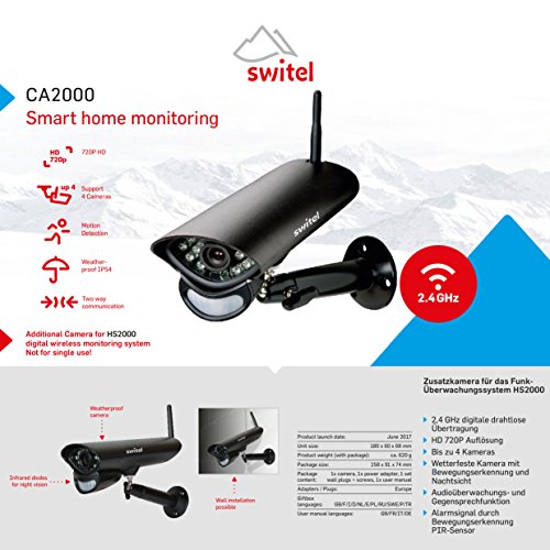 Switel ca2000 impermeabile HD della videocamera per sistema di sorveglianza video digitale, Nero