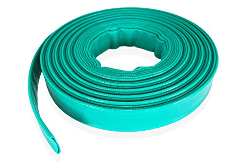 Swoote Tubo Piatto di Scarico in PVC 20 Metri, Diametro 25mm Verde Include 2 Ganci a Clip e Guanti da Giardinaggio in Nitrile - Compatibile con Pompa ad Acqua ad Immersione