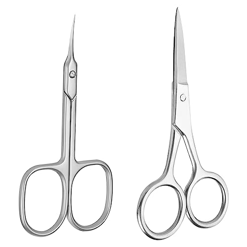 Precisione Grooming Forbici: 2PCS Piccole Forbici.Un paio di forbici appuntite sottili 9,1 cm e una forbici cuticole 10,4 cm. Realizzate con acciaio inossidabile di grado chirurgico, queste forbici per cuticole per unghie e capelli sono più forti del trimmer per cuticole standard per piccole forbici per fornire tagli e tagli più forti, più lisci e più precisi.