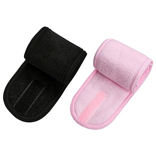 SWYSGS 2 Pezzi Fascia Skincare Microfibra Capelli Regolabili con Magic Tape,Fascia Spugna Makeup per Viso e Doccia,Fascia Capelli Donna Trucco Spa per Doccia Yoga Sport-Nero,Rosa