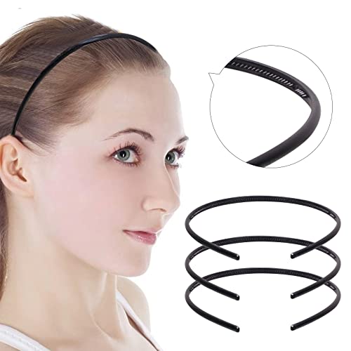 SWYSGS 3 pz Plastica Plain Headbands Denti Pettine Headbands Hair Bands Headbands per le donne ragazze (nero, 6mm)