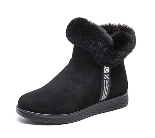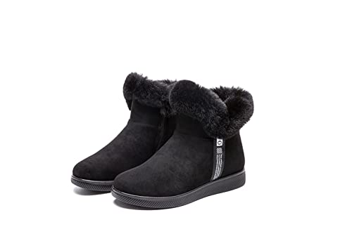 SWZEC Stivaletti Donna Invernali Imbottiti Morbidi Comode Eleganti Foderato Caldo Stivali da Neve con Pelliccia Cotone Peluche Bassi Zip Boots Nero 35