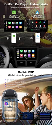 【CARPLAY & ANDROID AUTO & DSP】 ① Integrato in carplay e Android auto, supporta le funzioni del tuo smartphone da utilizzare in auto, ad es. controllo vocale con auto Android, riproduzione musicale, navigazione, telefonate e messaggi②DSP ha un chip processore completamente digitale e modalità a 64 bit con doppia precisione. Adatta alle esigenze individuali per un suono perfetto
