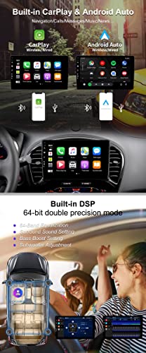 【CARPLAY & ANDROID AUTO & DSP】 ① Integrato in carplay e Android auto, supporta le funzioni del tuo smartphone da utilizzare in macchina, ad es. controllo vocale con auto Android, riproduzione musicale, navigazione, telefonate e messaggi②DSP ha un chip processore completamente digitale e una modalità a 64 bit con doppia precisione. personalizza il miglior suono in diverse posizioni in base alle tue preferenze.