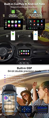【CARPLAY & ANDROID AUTO & DSP】 ① Integrato in carplay e Android auto, supporta le funzioni del tuo smartphone da utilizzare in macchina, ad es. controllo vocale con auto Android, riproduzione musicale, navigazione, telefonate e messaggi②DSP ha un chip processore completamente digitale e una modalità a 64 bit con doppia precisione. personalizza il miglior suono in diverse posizioni in base alle tue preferenze.