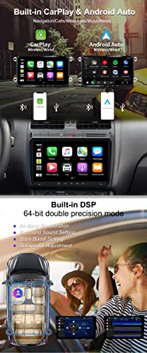 【CARPLAY & ANDROID AUTO & DSP】 ① Integrato in carplay e Android auto, supporta le funzioni del tuo smartphone da utilizzare in macchina, ad es. controllo vocale con auto Android, riproduzione musicale, navigazione, telefonate e messaggi②DSP ha un chip processore completamente digitale e una modalità a 64 bit con doppia precisione. personalizza il miglior suono in diverse posizioni in base alle tue preferenze.