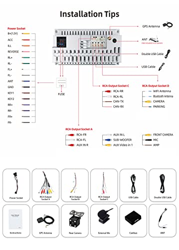【8 CORE, 4G + 64G】 ①Android 10.0, 4GB RAM + 64GB ROM, CPU - Rockchip AC8257 A53 - Octa Core - 64bit Prozessor - 2,0 GHz. Potenza in uscita: Max 4x50W - Radio IC-TDA7786 - Amplificatore IC-TDA7388. ② GRATUITA Telecamera di backup LED | Microfono esterno | Canbus