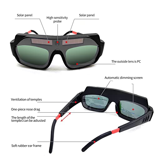 Sxiocta Occhiali da saldatore regolabili ad energia solare con oscuramento automatico, lente PC arco elettrico, saldatura antiriflesso per protezione, nero, 15 x 6 x 2 cm