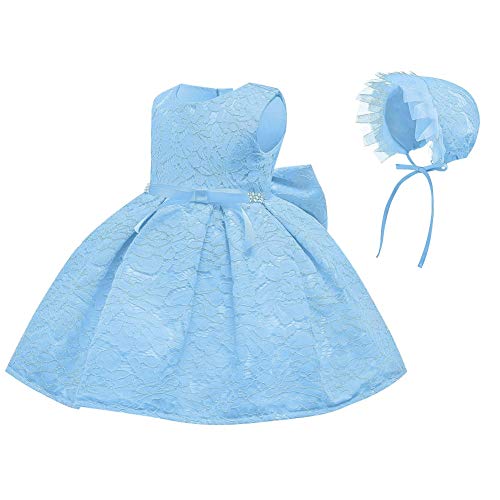 SXSHUN-Abito da Principessa Senza Maniche con Cappello Vestito di Tulle per Bimba con Pizzo di Fiori e Cappio, Blu, 12M/73CM