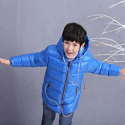 SXSHUN Bambino Giacca Invernale da Neve Boys' Snow Jacket Cappotto Imbottito con Capucha da Ragazzi, Blu, 7-8 Anni (Etichetta: 140cm)