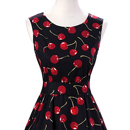 SXSHUN Vestito Donna Retro Anni 50 Vestito Vintage Rockabilly Pois Abito Anni 60 Senza Maniche, Nero/Ciliegia, L