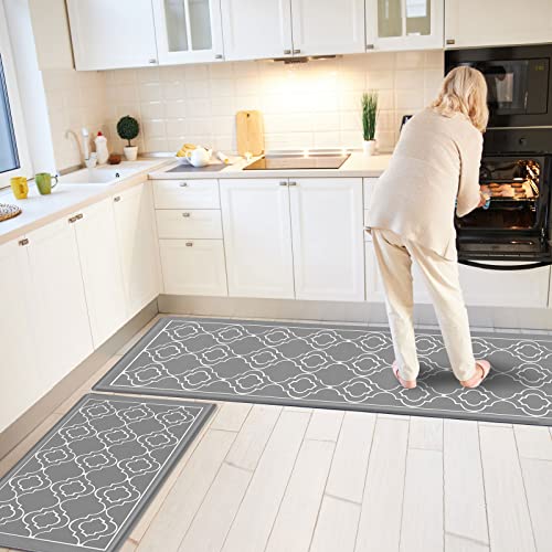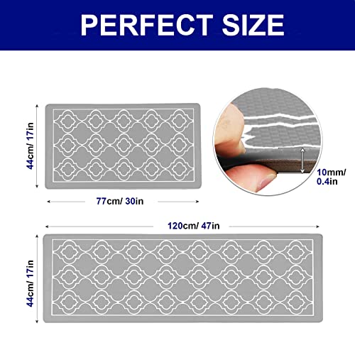 Sxuan Set di tappetini da cucina, 120 x 44 + 77 x 44 cm, antiscivolo, lavabile, anti-fatica, impermeabile, per cucina, corridoio, scrivania, ufficio (grigio)