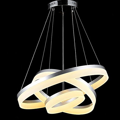 Sxysxy 46W Moderno Semplice LED Luce di Soffitto 3 Anello Lampade Creativo Lampadari Acrilico Lampada a Sospensione White Luce di Soffitto Uniche Home Lampadine Ø(60+40+20) cm Luce Calda 3000K