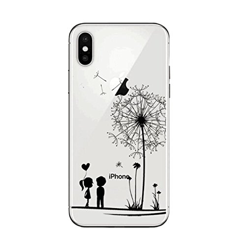 Sycode Custodia per iPhone X,Cover per iPhone X,Silicone Trasparente Case per iPhone X,Liquido Cristallo Chiaro Carina Divertente Motivo Dente di leone Amante Morbida Flessibile Silicone Gel Anti Graffio Gomma Tpu Ultra Sottile Crystal Clear Protettivo Coperture Skin Caso per iPhone X-Dente di leone Amante